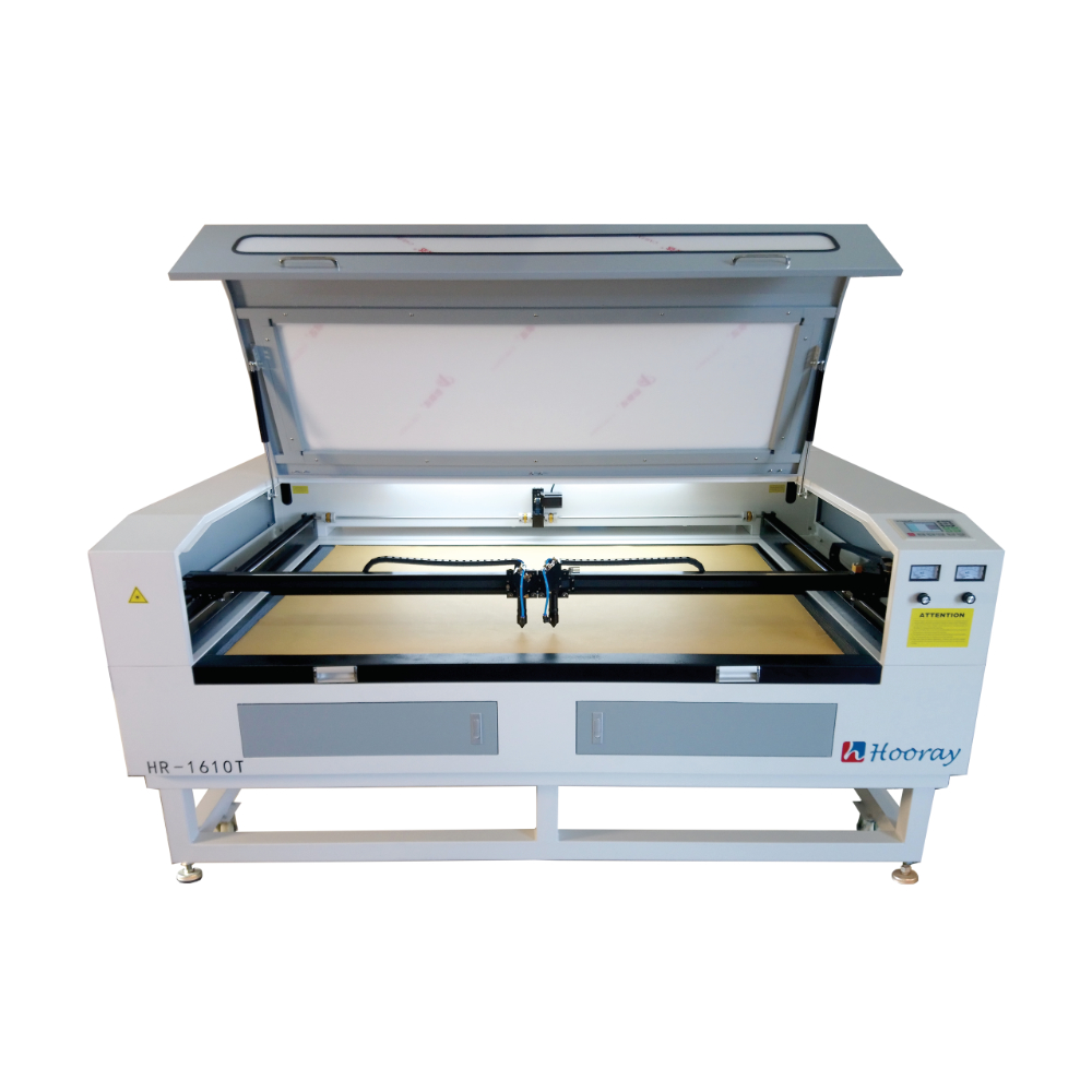 เครื่องตัดมีหัวเลเซอร์ 2 หัวเพื่อการประสิทธิภาพการตัดที่รวดเร็ว ประกอบด้วยหลอด laser 2 หลอด, อุปกรณ์จ่ายไฟเลเซอร์, linear guide นำเข้า, สเต็ปปิ้งมอเตอร์ และไดรฟ์นำเข้าประเทศเยอรมันทำให้รับประกันความคงทน, แผ่นตะแกรงสเตนเลสเจาะรูแบบรังผึ้ง, ระบบซอฟต์แวร์ที่ล้ำสมัย สามารถปรับเปลี่ยนกำลังของหัวเลเซอร์ได์ตามต้องการ เครื่องสามารถใช้ตัดวัสดุหนัง เสื้อผ้า แผ่นอะคริลิค และวัสดุอื่นๆที่คล้ายกันได้